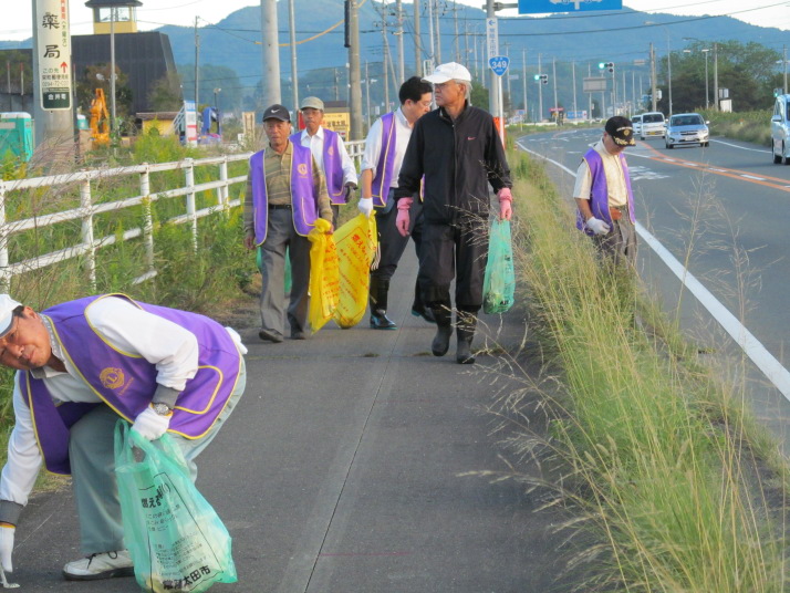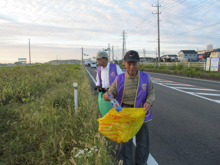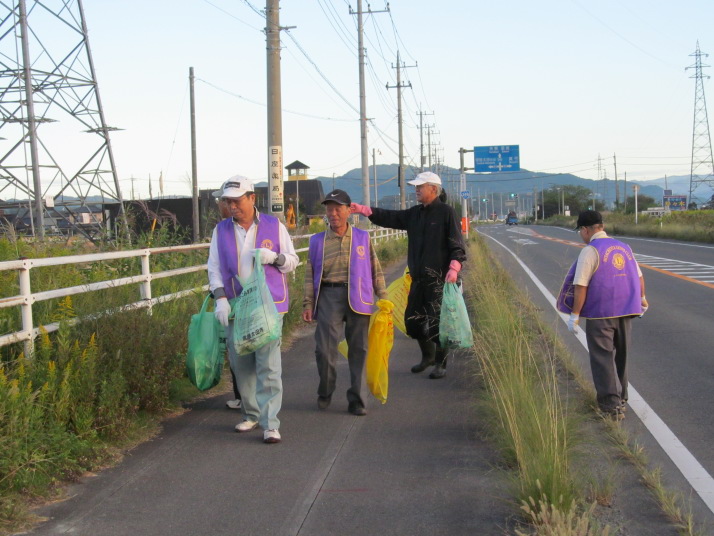 ライオンズ奉仕デー 早朝より国道の清掃